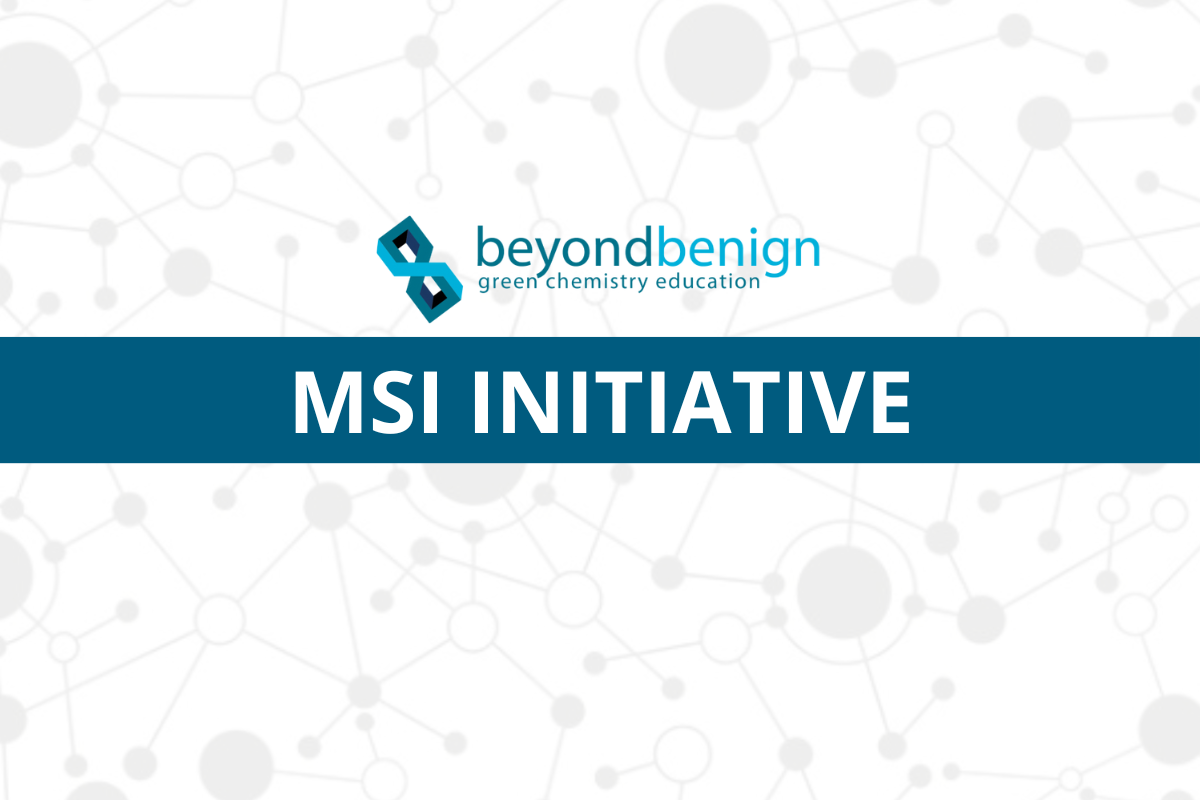 The MSI initiative is a critical component of the Beyond Benign Green Chemistry Commitment (GCC) 25×25 program, which seeks to ensure that 25 percent of graduating chemists in the U.S. have a background in green chemistry by 2025. The Commitment program offers higher education institutions a flexible model to expand green chemistry education through their science departments. Through signing the GCC, higher education institutions become part of a broad network advocating for green chemistry education, and gain access to professional development opportunities, funding opportunities, mentorship, peer-to-peer support, and much more.