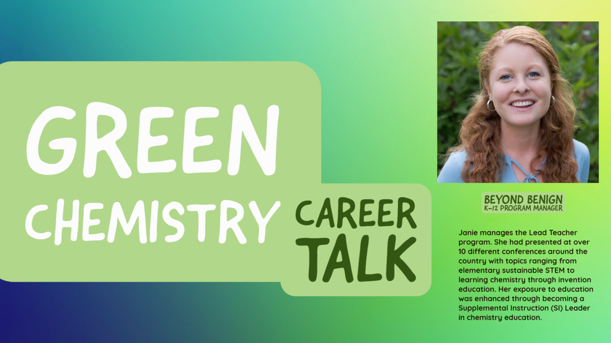 Our Co-Founder and Executive Director Amy Cannon, our K-12 Education Director Kate Anderson, and our Green Chemistry Commitment Director Irv Levy, together with Amy Keirstead, Reuben Hudson, Jennifer MacKellar, Mollie Enright, and Elizabeth Howson have just published a paper in the Journal of Chemical Education.