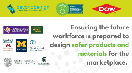 Beyond Benign, a 501(c)3 nonprofit, envisions a world where the chemical building blocks of products used every day are healthy and safe for humans and the environment. Beyond Benign’s mission is to foster a green chemistry community that empowers educators to transform chemistry education for a sustainable future. Beyond Benign is working to equip educators from K-20 with the ability to teach chemistry and STEM through a lens of sustainability grounded in the 12 principles of green chemistry. By providing educators with tools, training and a peer support network, educators are equipped to train the next generation of scientists and citizens with the skills and knowledge to create and choose products that are safe for human health and the environment.
